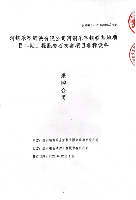 河鋼樂亭鋼鐵有限公司河鋼樂亭鋼鐵基地項(xiàng)目二期工程配套石灰窯項(xiàng)目非標(biāo)設(shè)備采購(gòu)合同
