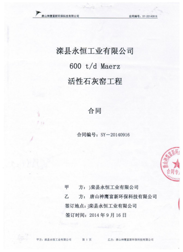 唐山永恒工業(yè)有限公司1x600t/d煤粉燃料雙膛豎窯工程設(shè)計(jì)、關(guān)鍵設(shè)備供貨、自動(dòng)化控制系統(tǒng)供貨、電氣安裝以及窯爐安裝指導(dǎo)等