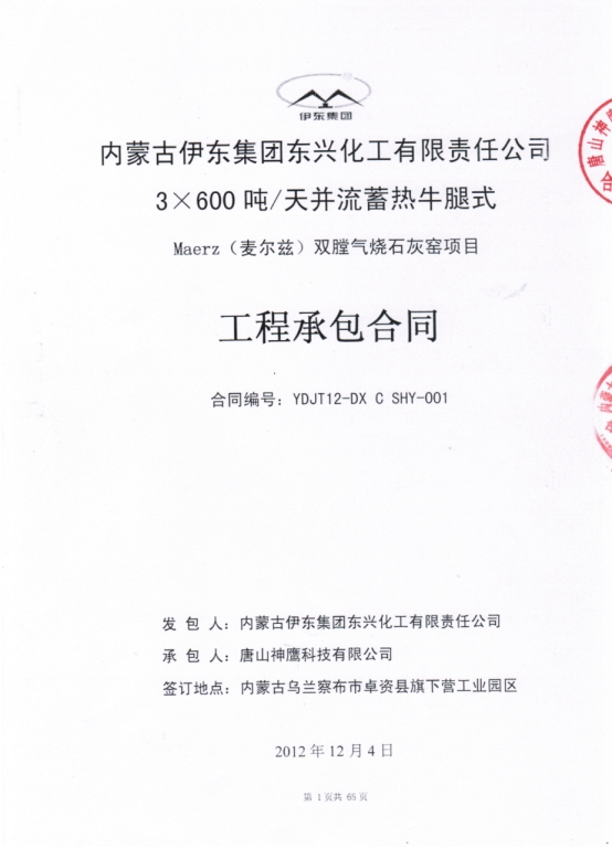 內(nèi)蒙古伊東集團(tuán)東興化工3×600噸麥爾茲窯EPC總承包工程