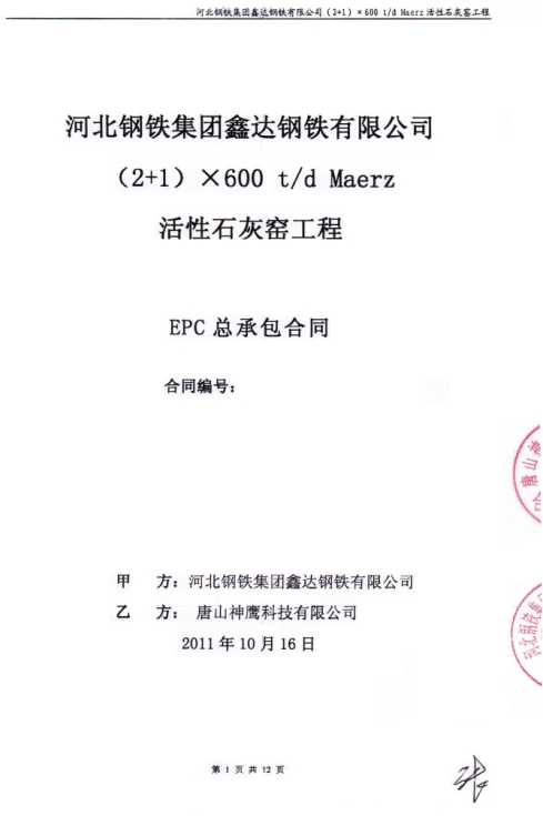 河北鑫達(dá)鋼鐵公司(2+1)×600噸麥爾茲窯EPC總承包工程